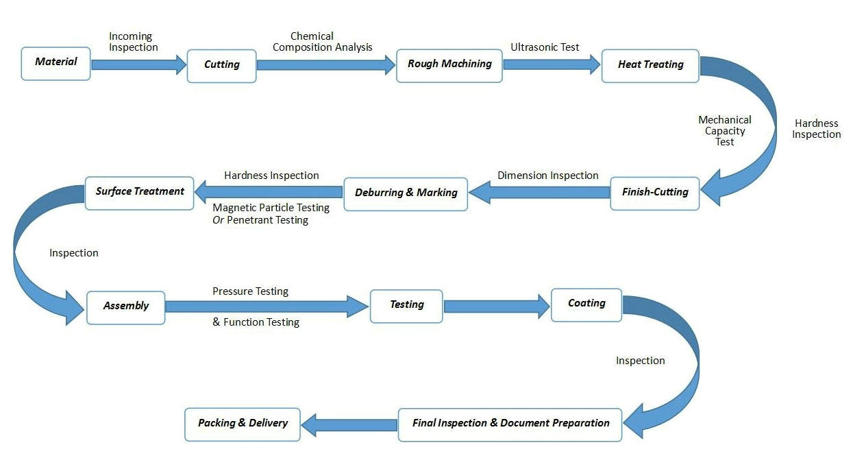 We have advanced and complete facilities for inspection, such as Tensile Strength Tester, Impact Tester, Ultrasonic Fault Detector, Magnetic Particle Flaw Detector, Spectrum Analyzer, Hardness Tester, Hydrostatic High-Pressure Tester, etc. Which strictly ensures each process has been tested and qualified.